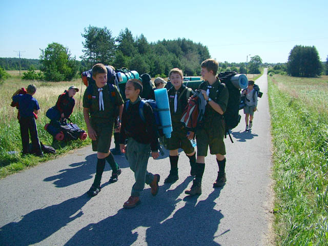 Minuta przed rozdzieleniem na zastępy biwakowe. Do obozu wmaszerowali dopiero o godzinie 12 z gotową obrzędowością i totemami.