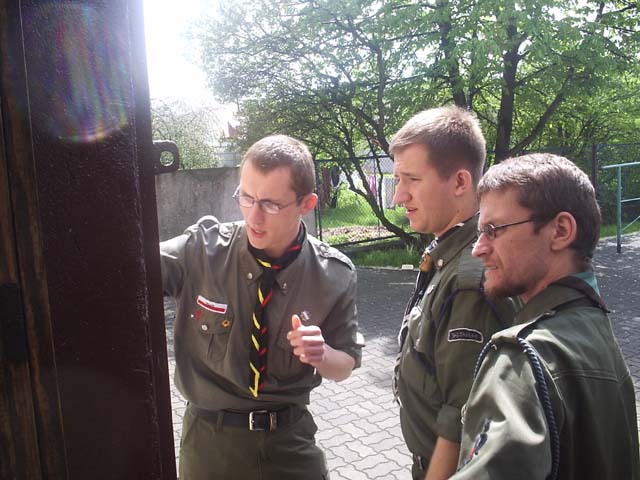 Jak widać zajęcia Dziadka odbywały się także na zewnątrz :-) Od lewej: dh Jakub Karpeta wyw, dh Tomasz Staszewski, pwd. Grzegorz Witkowski. Inne zdjęcia w kategorii "Konferencja Świętokrzyskiego Namiestnictwa Harcerzy" |