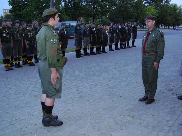 Meldunek w czasie apelu wieczornego na ręce Przewodniczącego Zarządu Obwodu phm Dariusza Lenarda złożył oboźny pwd Kamil Kaleta